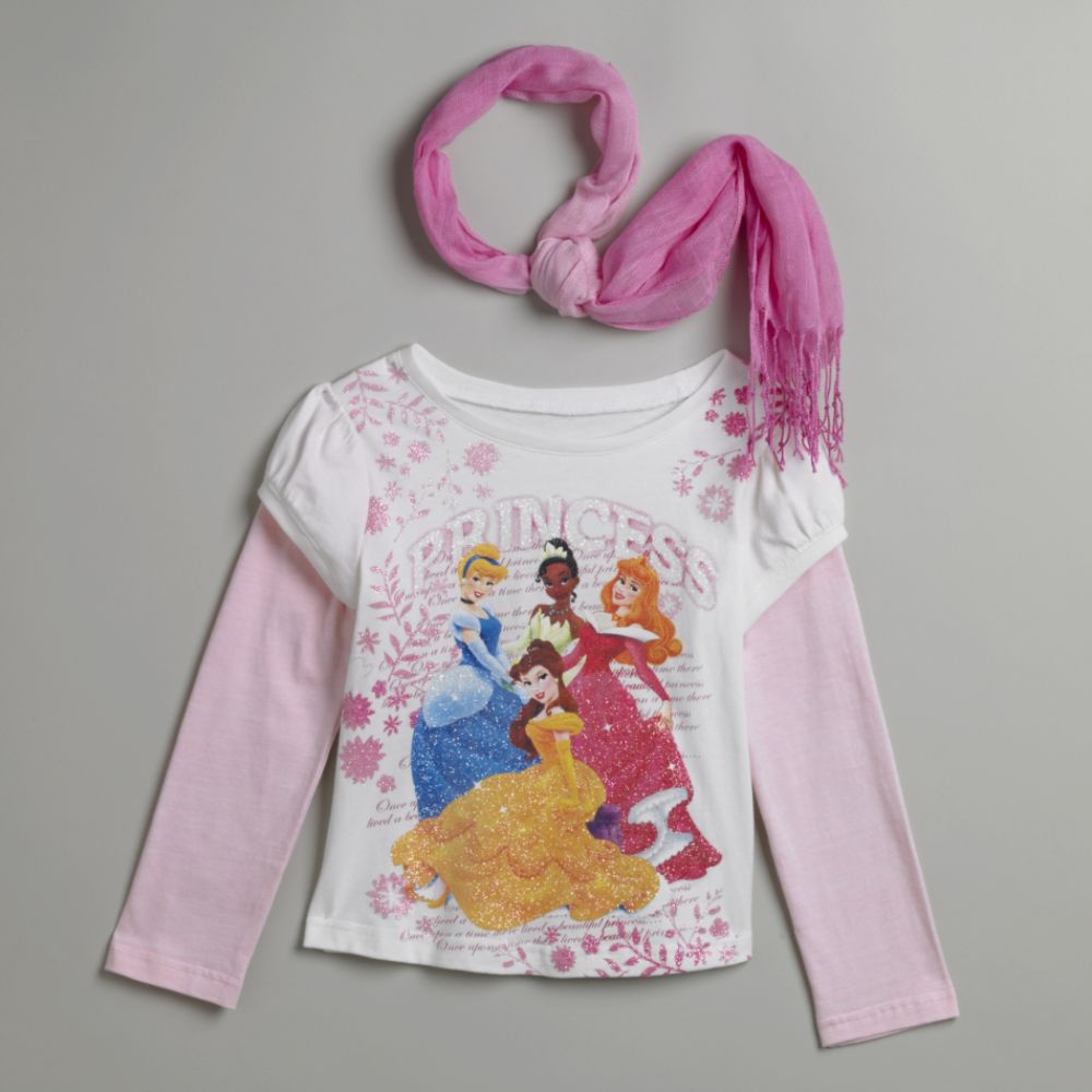 Disney Princess Girl's 4-6x Long Sleeve Screen Tee with Scarf $2.79 (was $20)